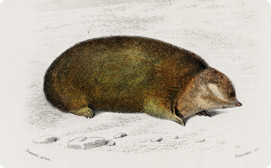Более века научный мир был уверен, что существует только одно млекопитающее, у которого шерсть переливается на свету. Речь о животных из семейства златокротовых, которые напоминают грызунов и большую часть времени проводят под землёй. У этих африканских эндемиков, обитающих к югу от Сахары, шерсть на свету переливается зелёным, пурпурным, синим, золотисто-бронзовым оттенками. Происходит это за счёт сплющенной структуры волосков с редуцированными чешуйками кутикулы, где тёмные и светлые слои действуют как многослойные отражатели.