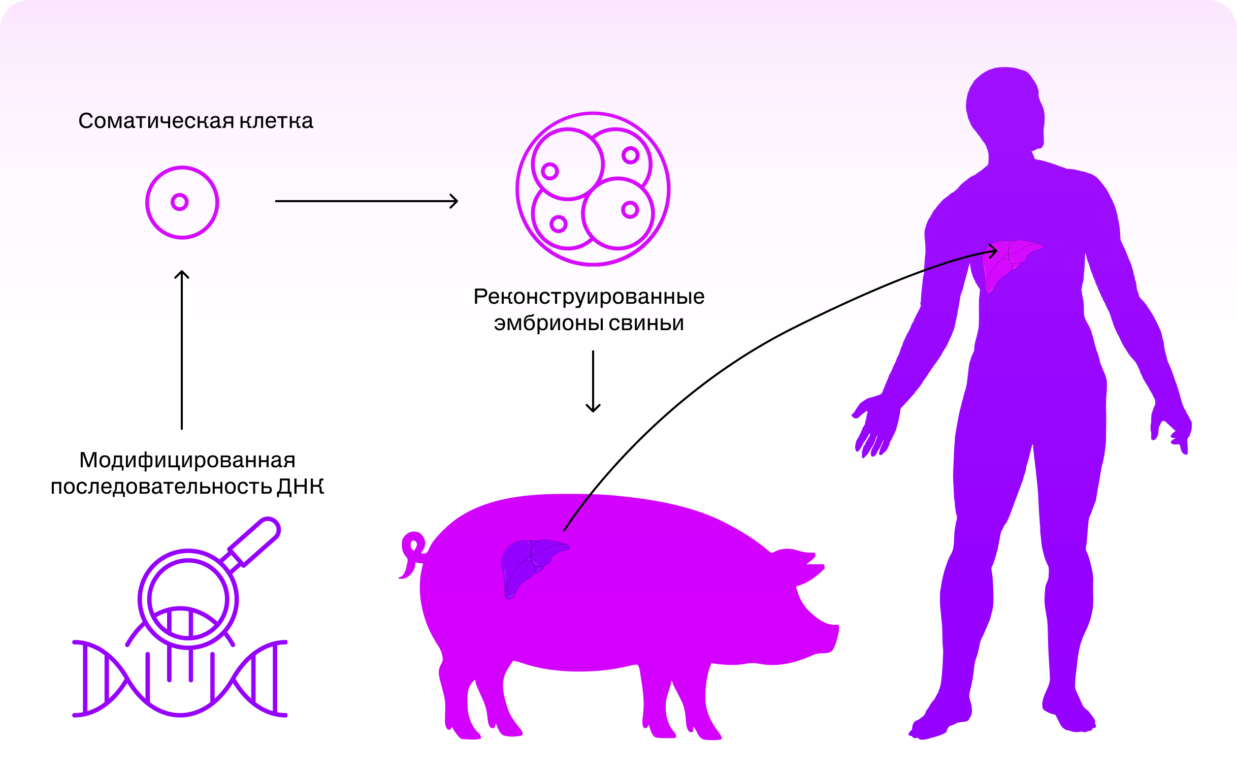 Впервые в мире живому человеку успешно пересадили свиную печень. Точнее часть органа, заменив ту, которая была повреждена карциномой и циррозом. Животное-донор перед этим было генетически модифицировано, чтобы снизить риск отторжения импланта. Всего было изменено 10 генов: три ксеноантигена были «выключены», а семь человеческих трансгенов «включены». Это позволило повысить совместимость органа с иммунной и свёртывающей системами человека.